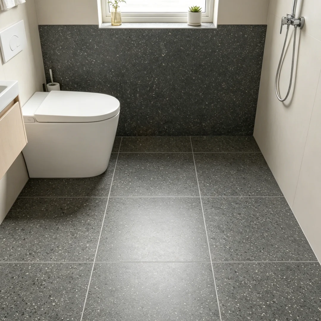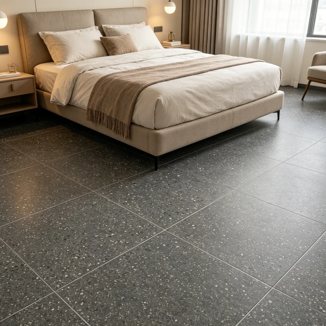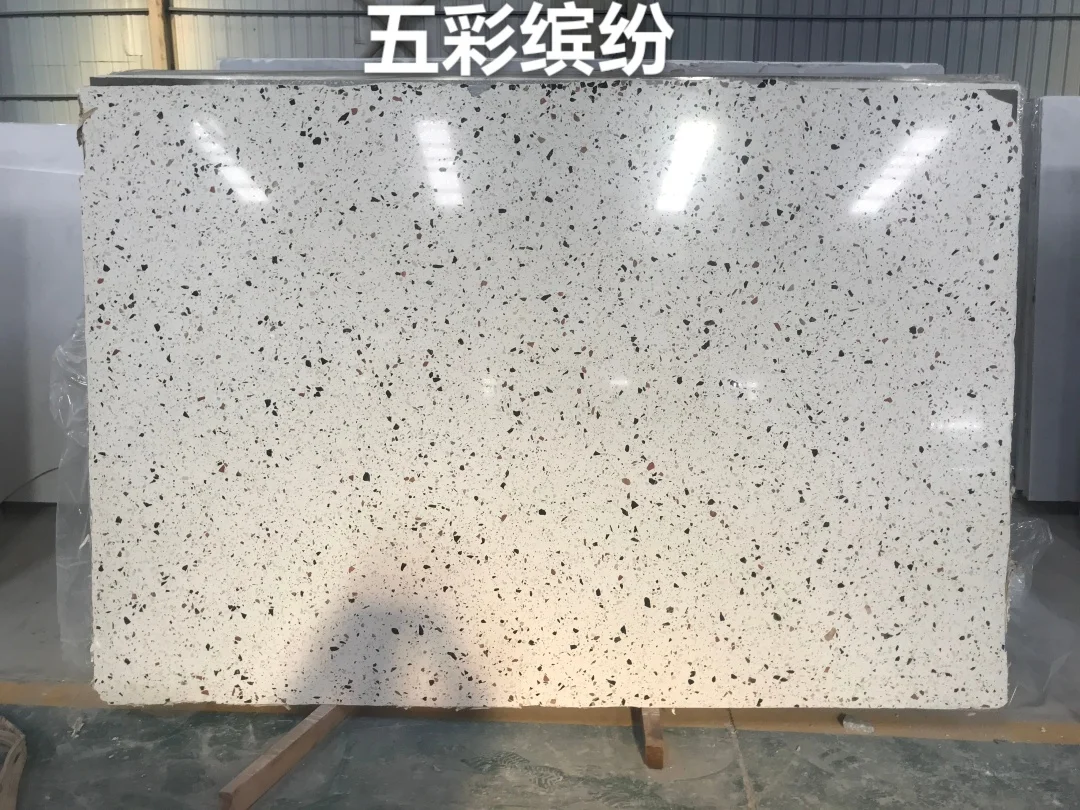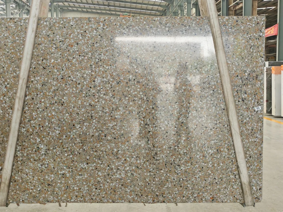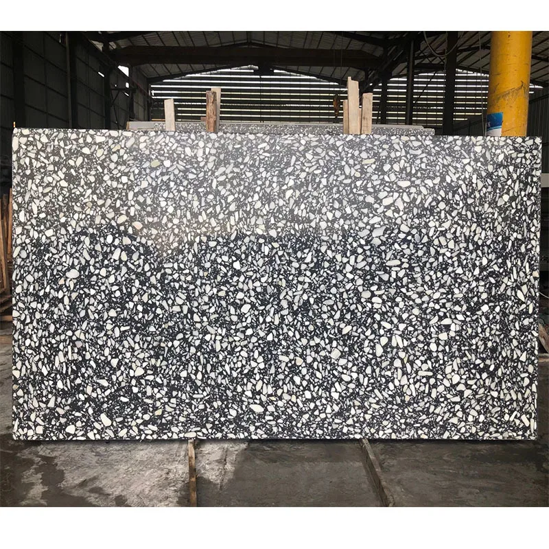É composto por fragmentos de mármore, quartzo, granito, vidro ou outro material adequado, moldados com um aglutinante cimentício (para ligação química), polimérico (para ligação física) ou uma combinação de ambos. |